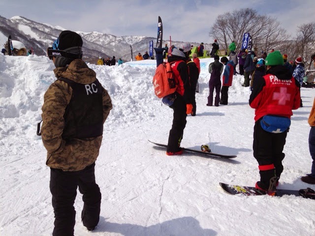 全日本選手権大会、スノーボードクロスが行われています。 スタートエリアの雰囲気はこんな感じです。