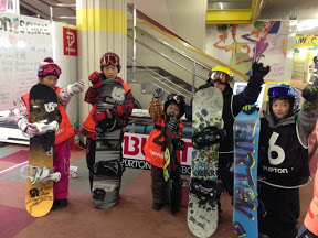 元気いっぱいに、キッズレッスンがスタートしました! 今日も一日スノーボードをがんばるぞー!「おー!」の掛け声の感じです。