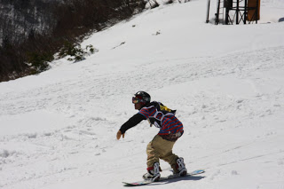 本日のチームダイナは特別講師 片山雅登です。 プロでありデモでありBURTONスクールJAM勝山校校長である 片山のレア過ぎる練習会です。 こんな機会も春ならではでみなさん楽しそうに練習会を受けていました。